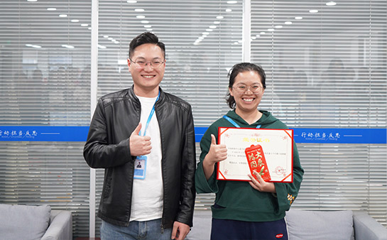 在激烈的市场竞争中,开拓并签下优质的合作伙伴,是我们业务持续发展的核心动力与坚实屏障。聂百欣老师凭借出色的商务谈判能力,坚持不懈,成功达到公司奖励标准,荣获此项表彰,由孙烨老师为其颁发证书和奖金。